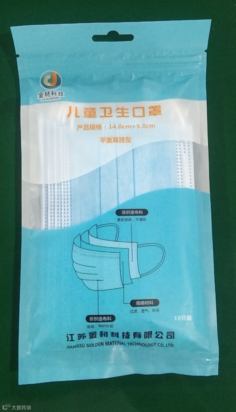 马上开学,孩子戴口罩闹别扭,怎么办?江苏金材科技有限公司的一次性儿童卫生口罩,透气舒适、环保卫生、图案可爱、款式多样,男孩女孩都喜欢!规格有145X90mm大童款和120x75mm小童款。儿童口罩符合GB/T 38880—2020的国家标准,颗粒物过滤效率90%以上,细菌过滤效率达到95%以上。