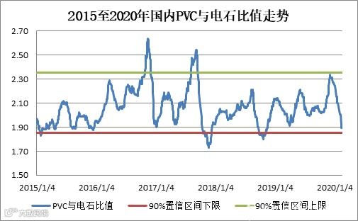 目前PVC和电石的比值较低,接近90%置信区间的下限,从侧面反映当前PVC企业的生产利润情况不佳,供应端有收缩可能,电石价格也可能因需求不佳面临下跌。虽然新型肺炎疫情仍在肆虐,影响需求恢复,不过根据PVC和电石的比值情况进行判断,预计PVC继续下行的空间有限,且不排除2月低位将成为中期底部的可能。(作者:广东塑料交易所行业分析师 王政)