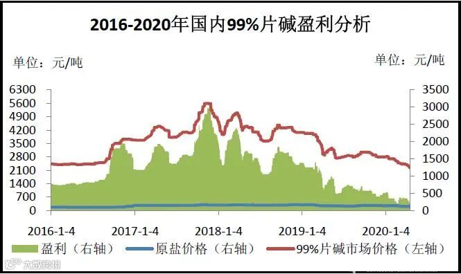 图3 2016-2020年国内99%片碱盈利分析
