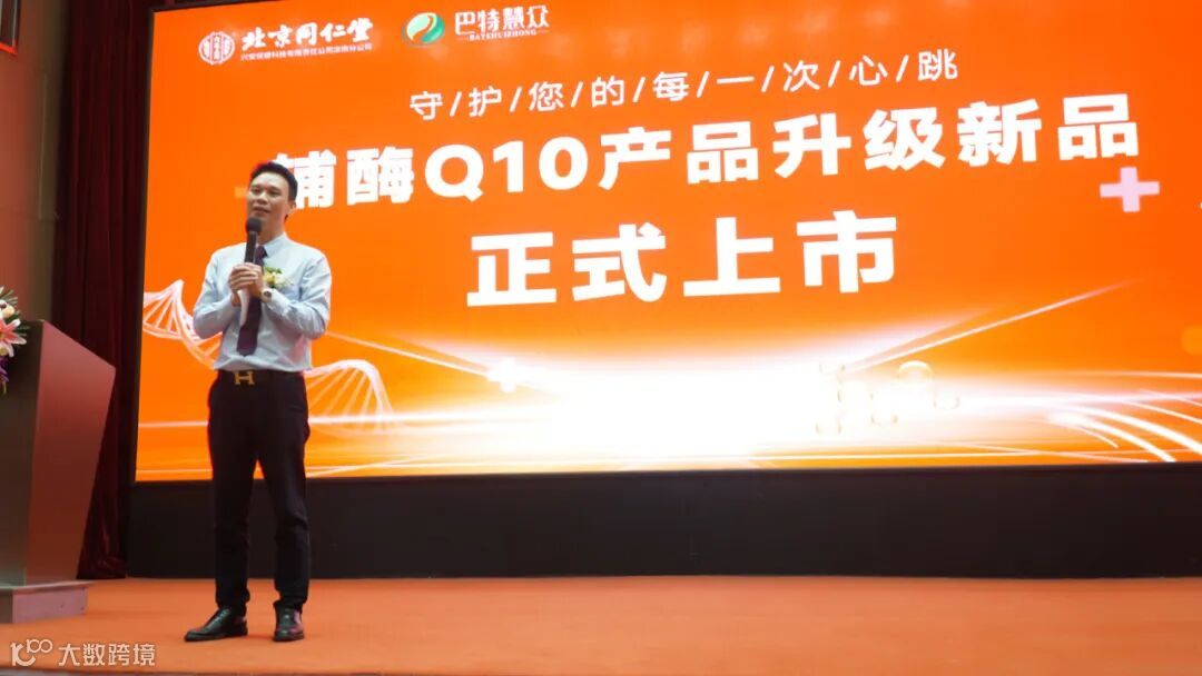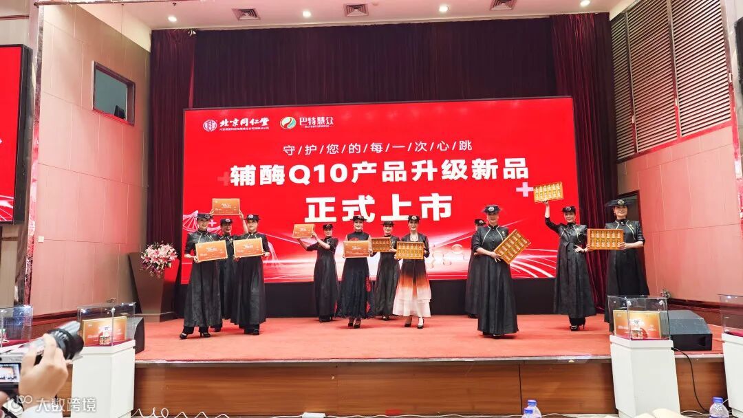 北京同仁堂刘总上台致辞并介绍全新升级后的新品辅酶Q10——“君安屹”。刘总讲解了品牌名字的深刻含义:“君” 代表君子、正直、尊贵,象征美好品质与身份;“安” 寓意平安、安定、安宁,祈愿生活顺遂;“屹” 表示屹立、坚定,彰显坚定意志与不屈精神 。