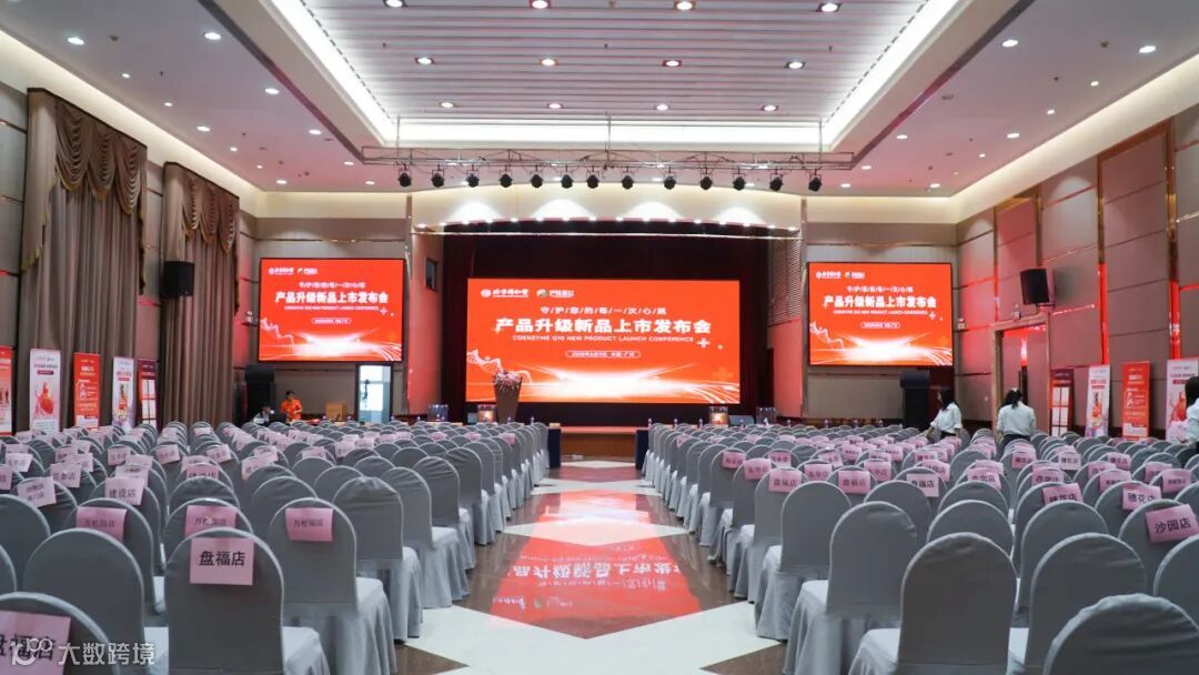 随后,激动人心的辅酶Q10升级新品上市启动仪式开始。舞台上,12个手印整齐排列,王领军教授、刘总、庄总、各大区领导以及公司营养顾问一同上台,共同参与启动。现场观众齐声倒数,在热烈氛围中,启动仪式圆满完成,标志着新品正式推向市场。