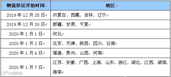 表1 全国物流停运时间表