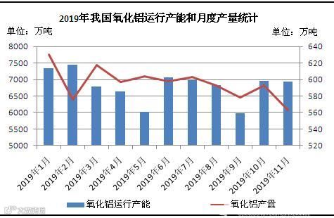 图4 2019年国内氧化铝运行产能和月度产量统计