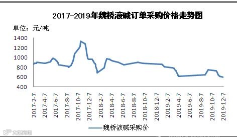 山东魏桥,作为国内重要的氧化铝企业,其液碱订单采购价格的波动直接影响山东及周边液碱市场走势。自2019年10月底以来,魏桥已经连续七次下调采购价格,累计下调190元/吨,下调幅度高达25.3%。