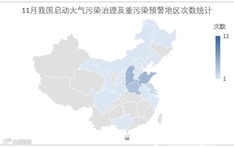 图5 2019年11月国内启动大气污染治理及重污染预警地区次数统计
