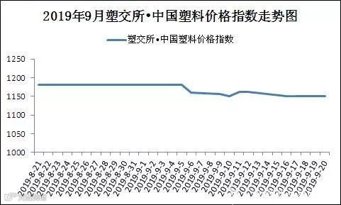 中美经贸摩擦紧张局势有所缓解以及沙特阿美原油设施遭遇无人机攻击等消息面提振市场,本期国际油价保持升势,期末WTI国际油价收报58.09美元/桶,较上期上涨3.12%。国际油市表现良好,带动大宗商品走强,国内塑料类期市整体上扬,叠加央行降准利好,塑料现货市场一度顺势上涨,其中聚烯烃现货产品价格上涨2-3%;PVC生产企业尽管迎来秋检高峰期,但对市场提振有限,因终端需求“旺季不旺”拖累,价格微跌1.5%。本期广东塑料交易所电子盘行情趋弱震荡,交易商交投意愿一般,盘中成交量与订货量较上期双双下降。截至期末收盘,塑交所•中国塑料价格指数报1150.31点,较上期下跌30.28点,跌幅2.56%。目前塑料原料供需市场变动相对有限。市场消息面较多:第一、10月迎来新中国成立70周年庆典盛大活动,京津冀等多地禁运危化品,对塑料上下游产业链存在一定影响;第二、生态环境部发布《京津冀及周边地区2019-2020 年秋冬季大气污染综合治理攻坚行动方案(征求意见稿)》,未来将加大大气整治力度,或间接影响塑料产销;第三、“金九银十”需求旺季不旺,塑料行情缺乏支撑。综合来看,塑市缺乏利好,预计下期塑料行情仍难有走强动力。