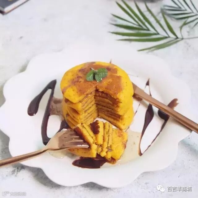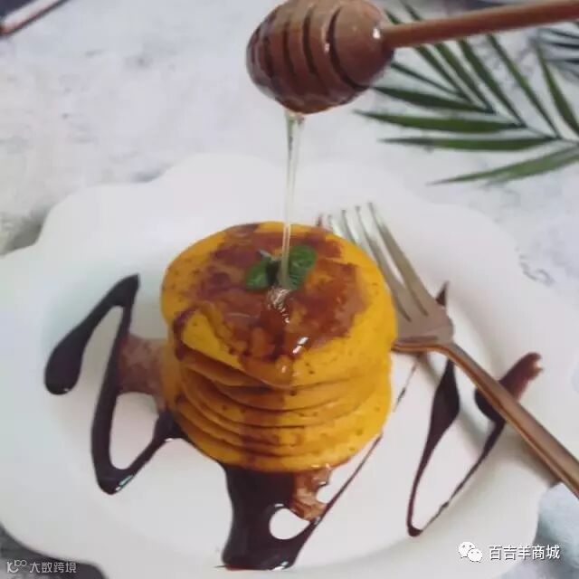 煎好的南瓜松饼外焦里嫩,表面浇上一些巧克力酱和蜂蜜,香甜却不令人 觉得腻,配合一杯浓浓奶香味的百吉羊金装配方羊奶粉泡的羊奶,南瓜本身清甜与淡淡的奶香味浑然一体。一份南瓜早餐下肚,不止是营养饱腹,还有好心情!