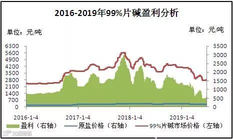 图4 2016-2019年国内99%片碱盈利分析