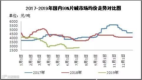图1 2017-2019年国内99%片碱市场均价走势对比图