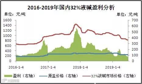 图3 2016-2019年国内32%液碱盈利分析