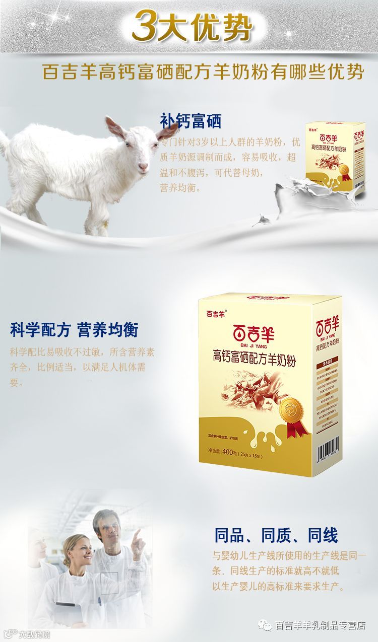 · 百吉羊注重“营养搭配才健康”理念,专注羊乳、专业配方、专心健康,用一杯羊奶补充每天所需营养。