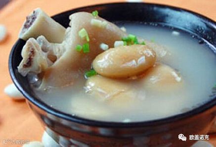 3、锅中加入适量清水,旺火煮沸,放入猪蹄,锅加盖,改用文火将猪蹄炖烂,加入羊奶、精盐煮沸后即可食用。