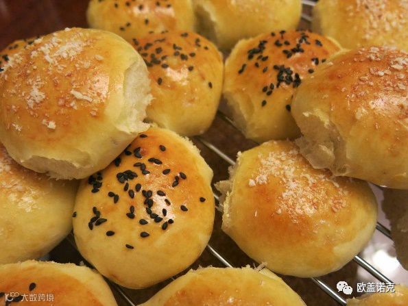 5、发酵好的面团刷上蛋液,撒上芝麻,上下火180℃烤18分钟即可。