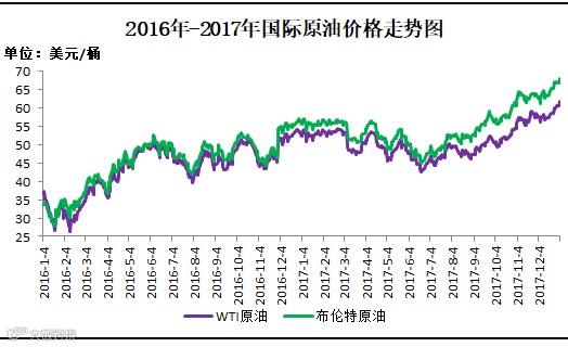 2017年下半年以来,国际原油开始强势反弹。2017年10月,全球经济数据好于预期,全球用油量大增,刺激油价大幅上涨;2017年底,欧佩克达成延长减产协议,利好油价;北海福蒂斯原油管道故障和利比亚原油输送管堵塞,刺激油价震荡上涨;伊朗、利比亚等中东国家局势紧张,2017年下半年油价震荡上涨,全年WTI运行区间在45-60美元/桶,均价在50.09美元/桶。