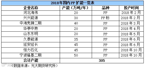 2018年新增产能较多,有9套装置计划投产,新增产能在305万吨,其中粉料在30万吨左右。目前环保压力不减,加之PP装置从试车到投放市场的时间周期较长,考虑到计划投产的企业有部分属于民企,开工较为灵活,投产延后的可能性较大。因此,对PP市场的冲击也将会比计划投产时间延后。但新装置的大量投产,对市场造成的冲击仍不可忽视。