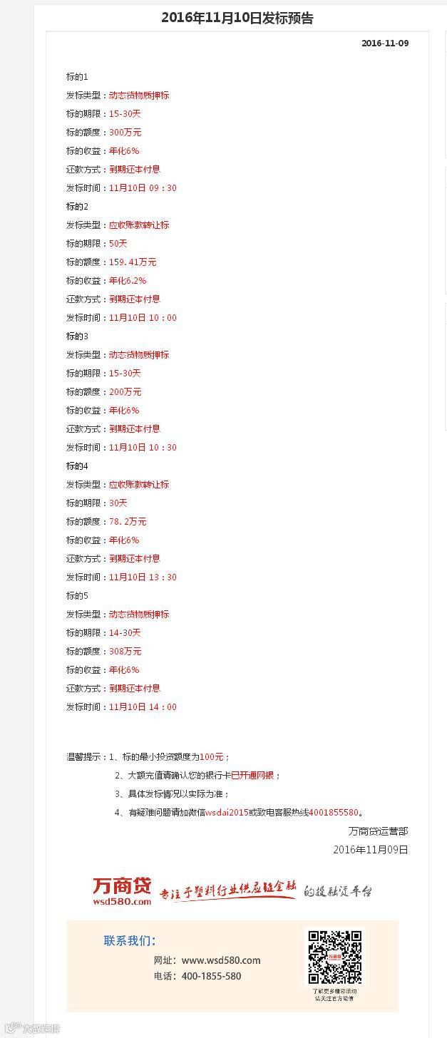 【万商贷】新标预告