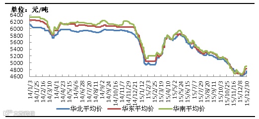 回顾2015年全年PVC市场运行特点为急涨长跌,1-5月份市场在急速上涨后,进入宽幅震荡格局,下半年市场整体维持弱势阴跌格局,自5月下旬起市场鲜有上调,缓慢下跌贯穿全年,PVC炒作主题以企业检修、阶段性缺货以及原油价格波动为主,其中原油价格涨跌贯穿全年。具体来看,自2015年春节过后,市场短暂缺货激活了下游需求,贸易商囤货居奇,更加激化了供应短缺的局面,但是这也提前预支了需求。随着时间推移,油价因素影响扩大,虽然一段时期内乙烯料价格仍高于电石料,但不断下跌的原油价格也封锁了电石法的反弹空间,市场气氛由激进购入变成谨慎观望,价格也转入了调整期。
