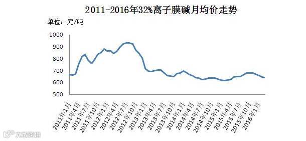 从2011-2016年近五年的32%离子膜碱价格走势来看,市场价格已经跌至“地板价”。据安徽八一化工、湖北沙隆达等华东、华中地区下游客户相对固定的氯碱厂家市场人士介绍,相比起前几年,目前液碱的销售利润很微薄,如果液碱价格继续往下跌,氯碱厂家就很难维持正常经营,因此厂家当前多稳价出货,暂无继续下调液碱出厂价格的打算。