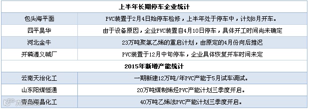 2015年PVC长期停车与新增产能统计表
