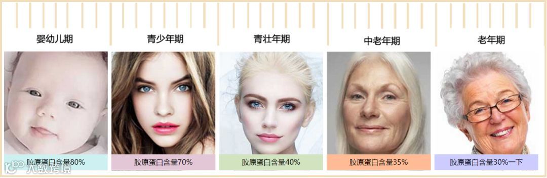 女性在20岁左右时,胶原蛋白已经开始流失,25岁则开始进入流失的高峰期,40岁皮肤中胶原蛋白的含量不到18岁的一半,同时,女性由于月经、生育等生理因素的影响,女性胶原蛋白流失量是男性的2.5倍。