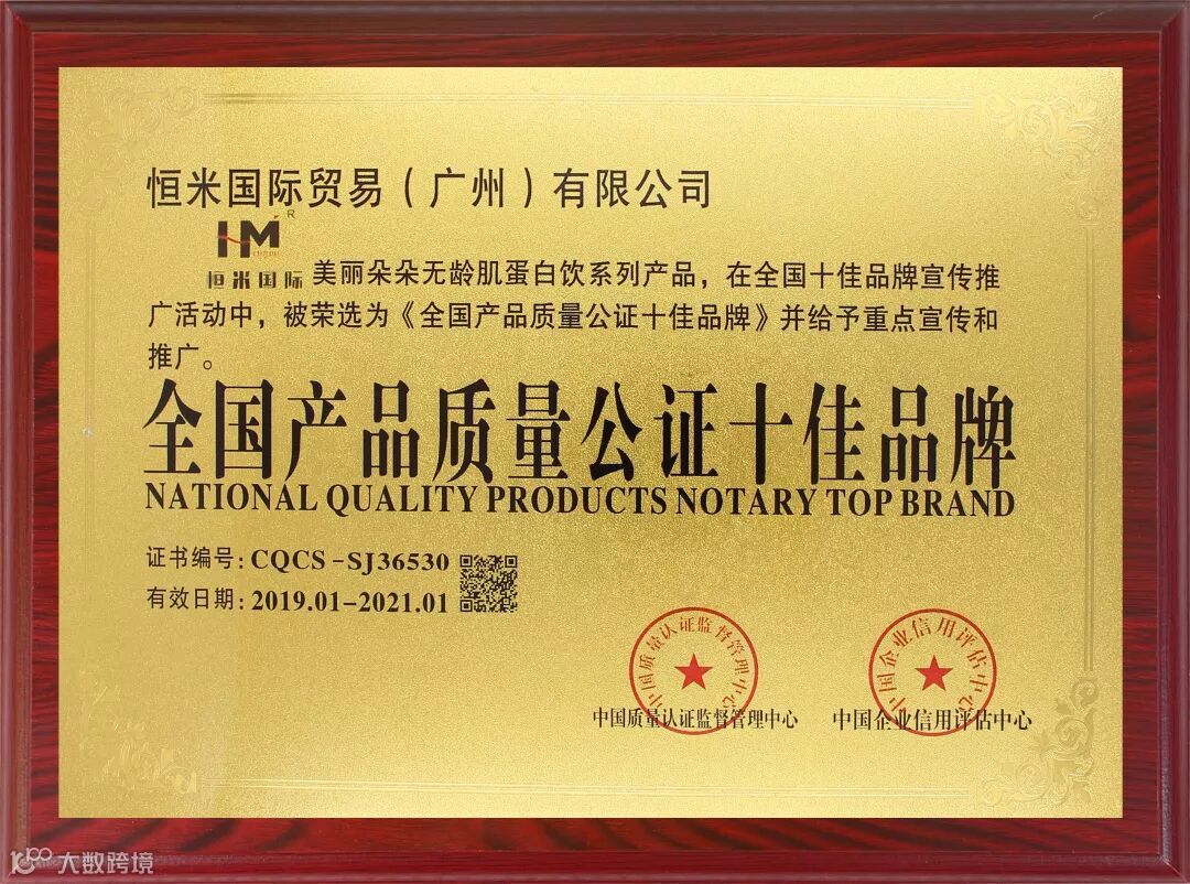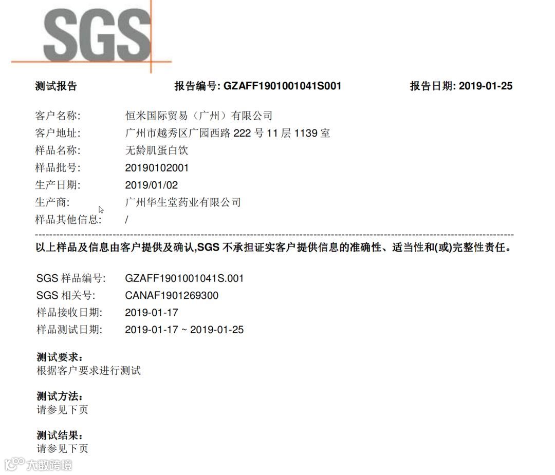 2019年1月,美丽朵朵无龄肌蛋白饮通过SGS认证!