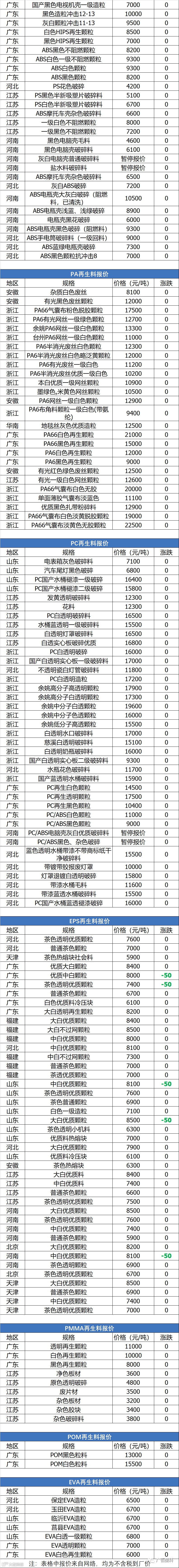 3月22日回料报价