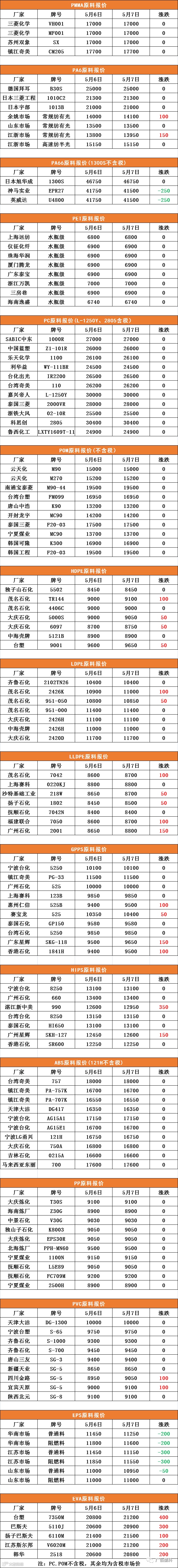 导读:广佰塑料-原料报价PC、POM不含税,其中含税市场价注 表格中报价均来自网络-