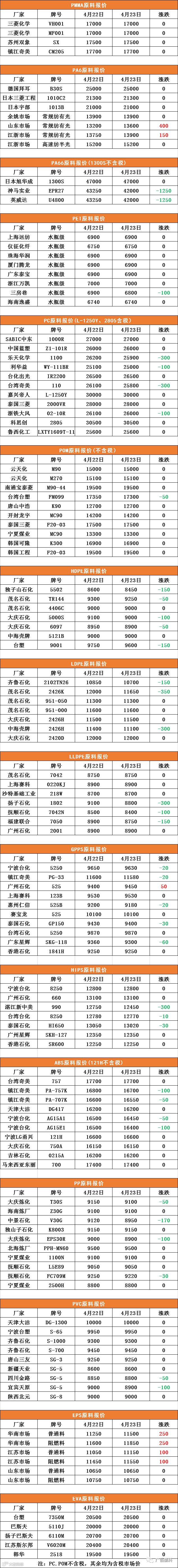 导读:广佰塑料-原料报价PC、POM不含税,其中含税市场价注 表格中报价均来自网络-