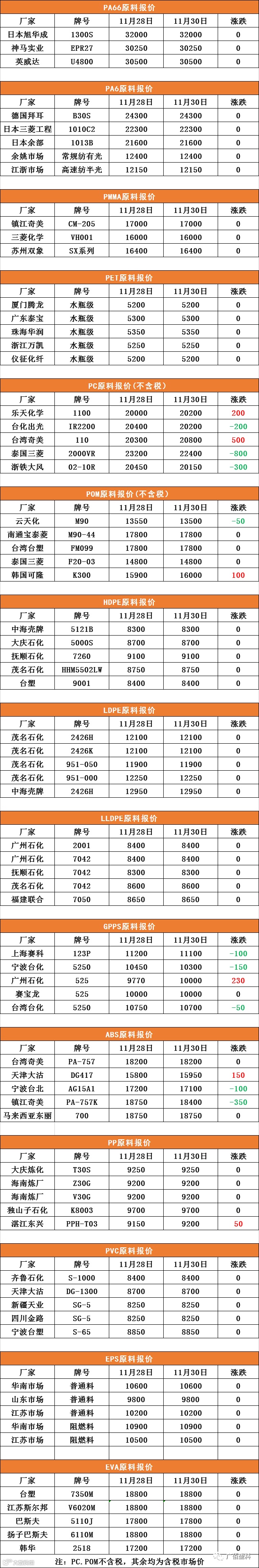 PC、POM不含税,其中含税市场价