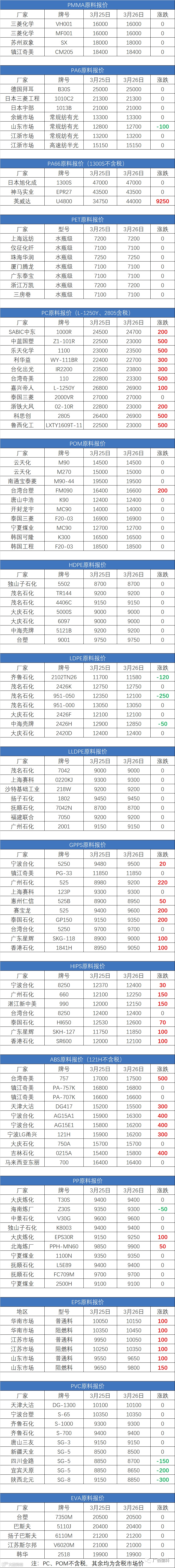3月26日原料报价