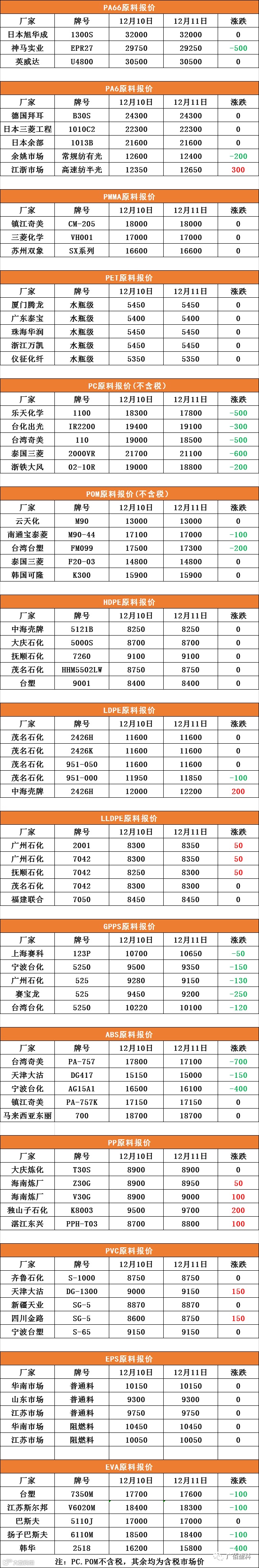 PC、POM不含税,其中含税市场价