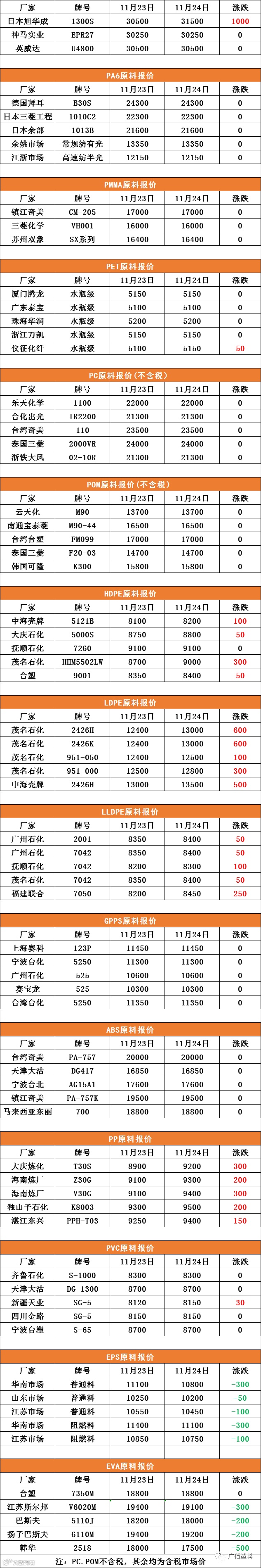 11月24号原料报价
