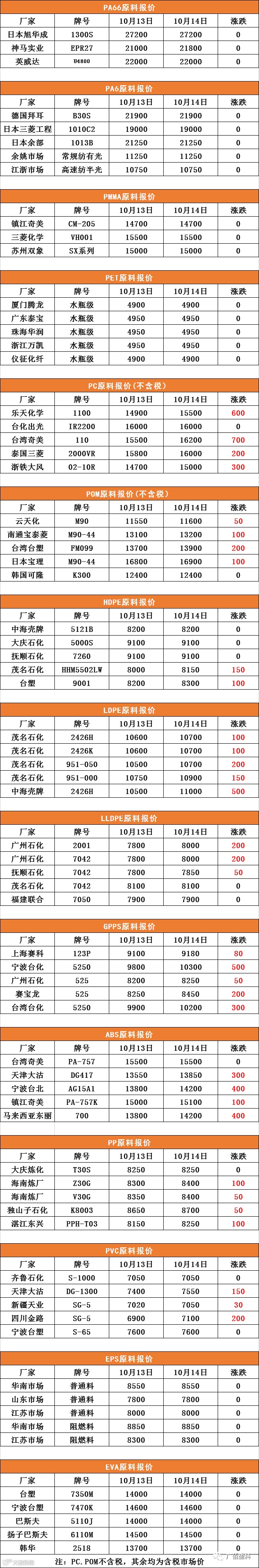 PC、POM不含税,其中含税市场价