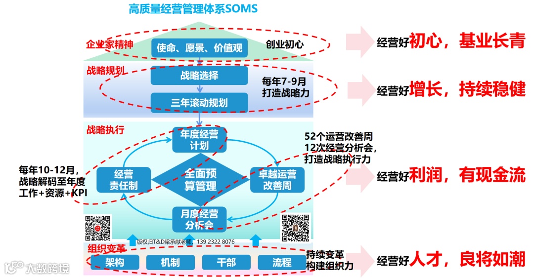 战略执行包括了2个虚线圈5个方块,这5个方块决定了企业能赚多少钱,能有多少现金流。