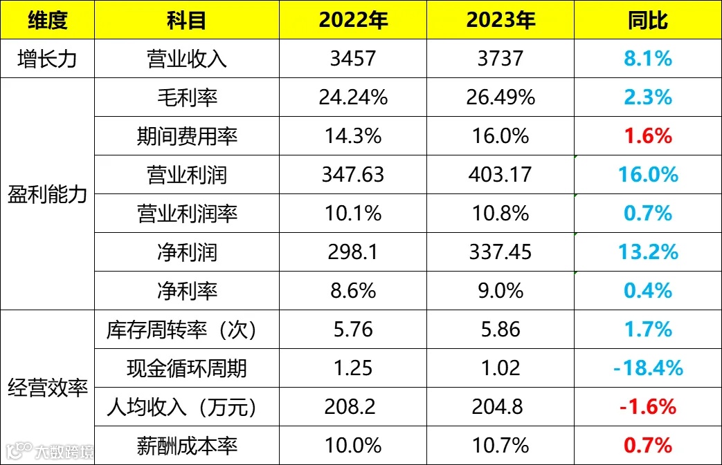 2024年3月27日,美的集团发布了2023年年报,同比2022年,美的集团各项指标取得了亮眼的成绩,如下表: