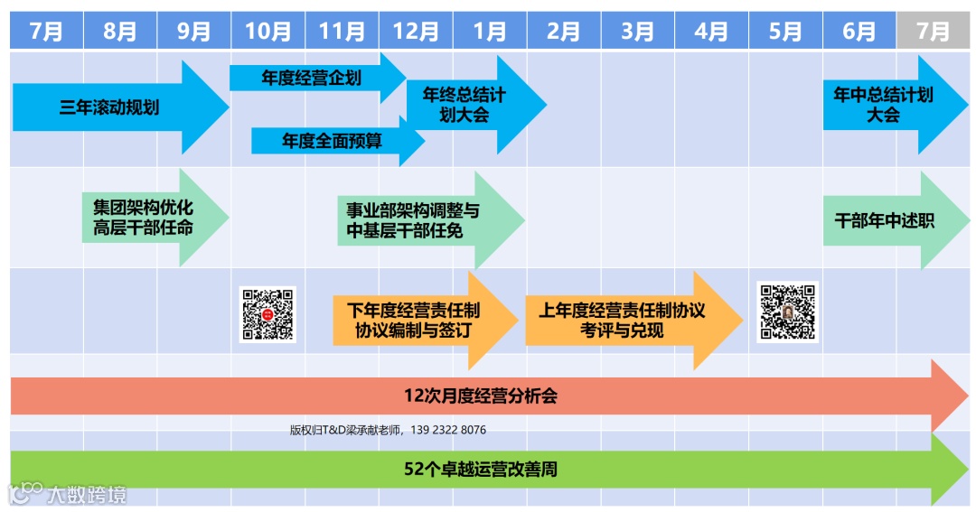 左边虚线圈中包括了年度经营计划(在美的内部叫年度经营企划)、全面预算编制和经营责任制这三个方块。