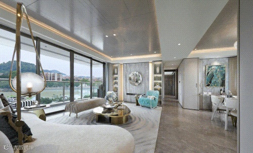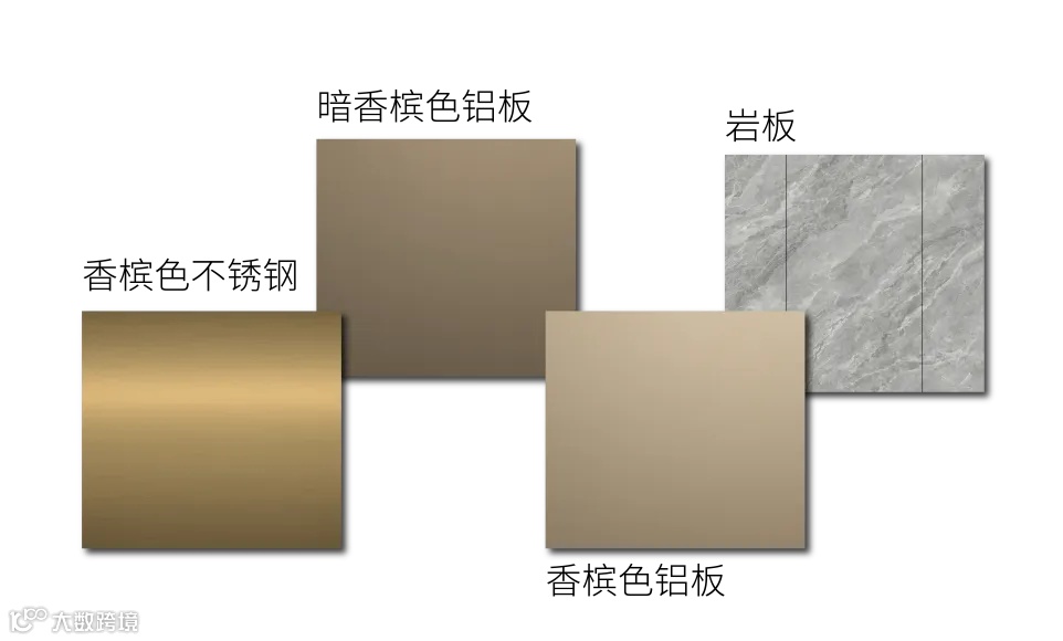 整体色彩以淡雅的淡彩为主,搭配温和而高级的香槟金色金属、纹理细腻的拉斯不锈钢以及灰色调的仿石岩板,交织出一幅广绣“金丝银绣”的柔和之美。这些建筑宛如一个个发光的“玻璃盒子”,在现代设计中巧妙融入了东方的空间底蕴,呈现出一种独特的高级感,特色鲜明,令人印象深刻。