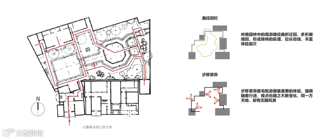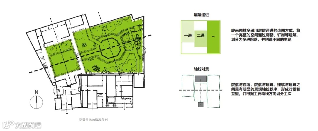 在园林规划上,汲取广绣与岭南园林的特色。广绣以其丰富的色彩和精细的工艺著称,而岭南园林以余荫山房为例,以其小巧玲珑、布局惊喜的特色闻名。