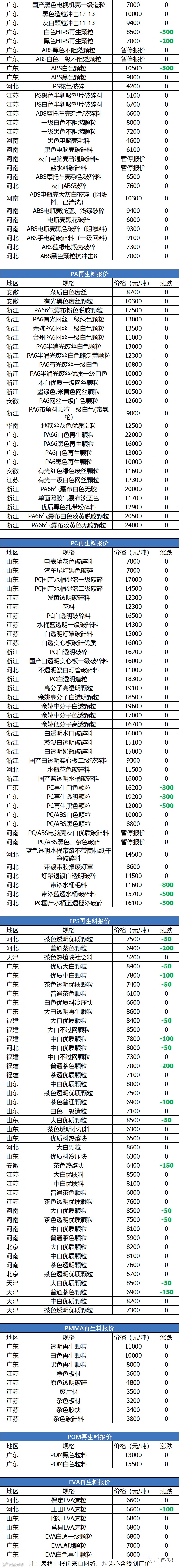 11月18日回料报价