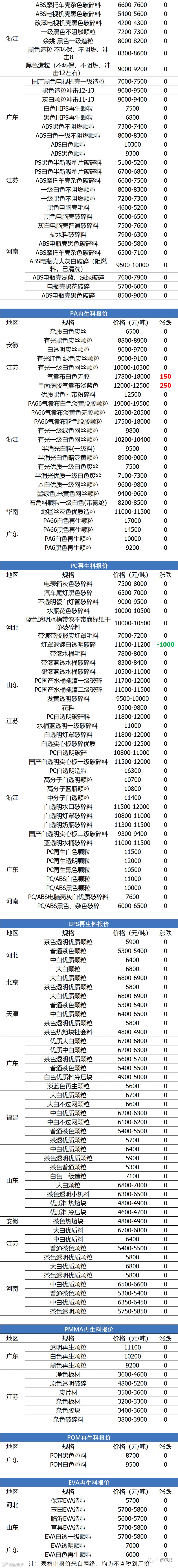 导读:关注公众号每天推送最新回料报价