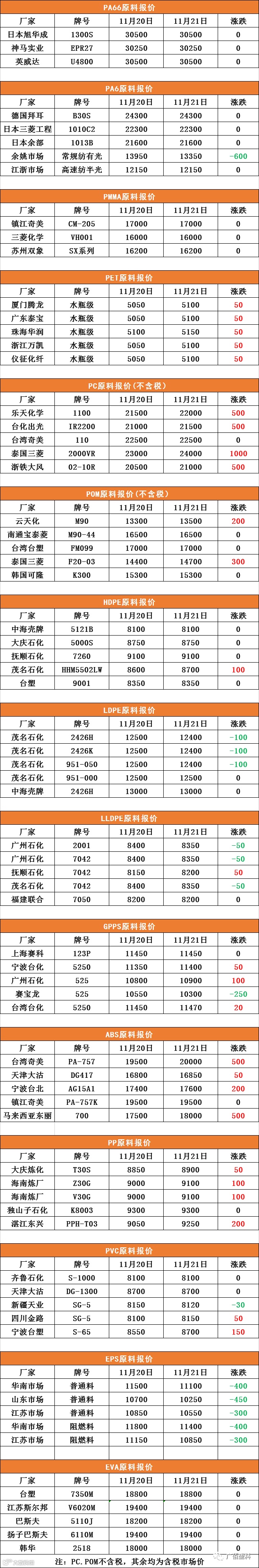 导读:11月21日塑胶原料报价