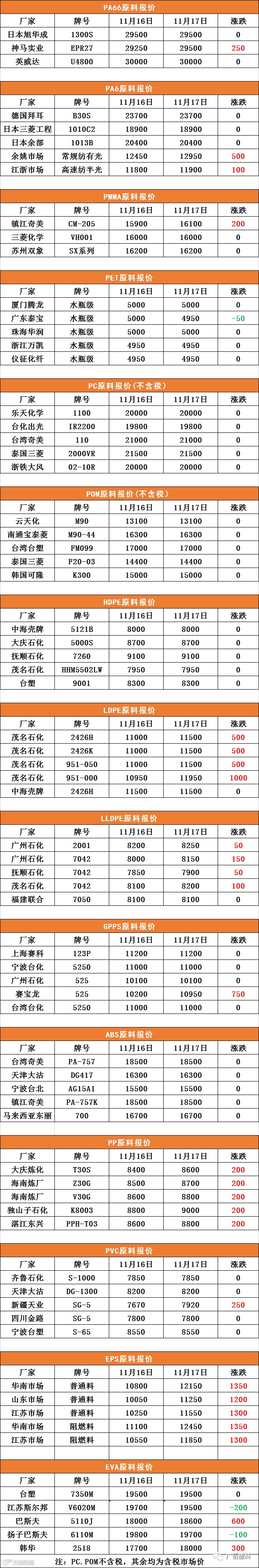 11月17号原料报价