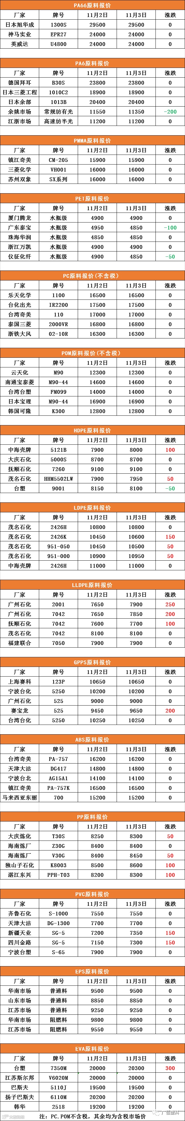 PC、POM不含税,其中含税市场价