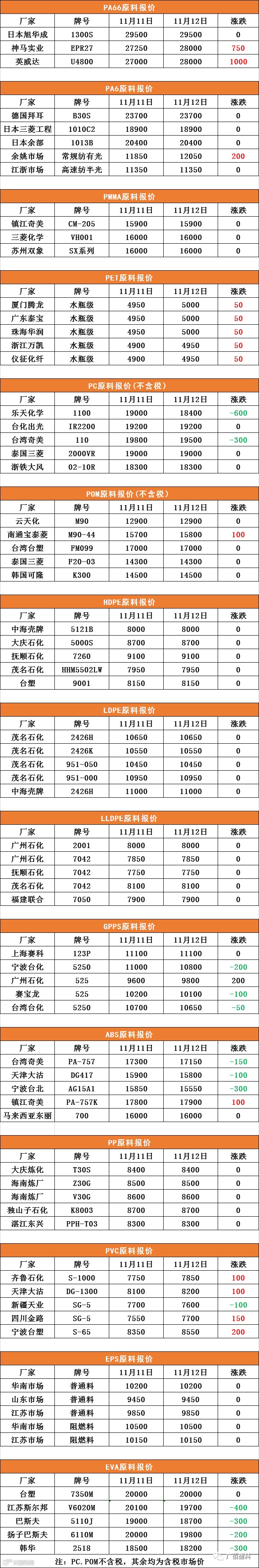 11月12号原料报价