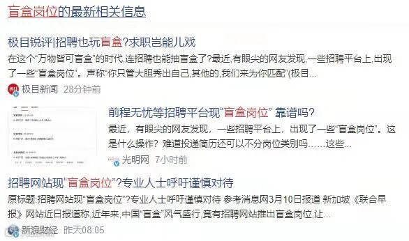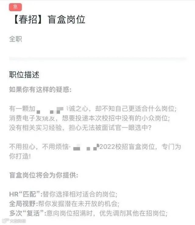 眼下,正值春招高峰期,网上惊现一种新型招聘玩法——“盲盒岗位”,一时惊起千波浪,引起众多争议。