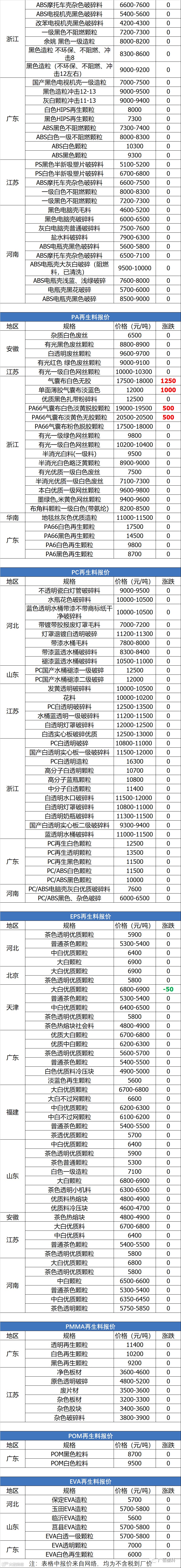 导读:关注公众号每天推送最新回料报价