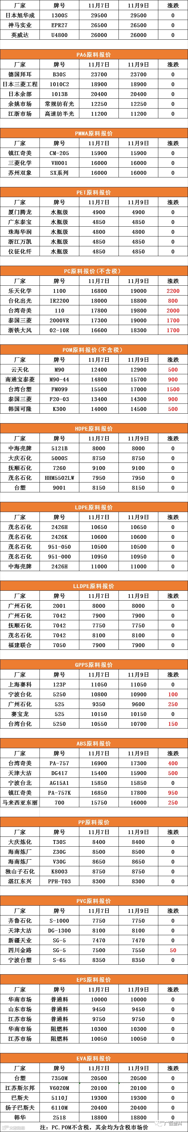 PC、POM不含税,其中含税市场价