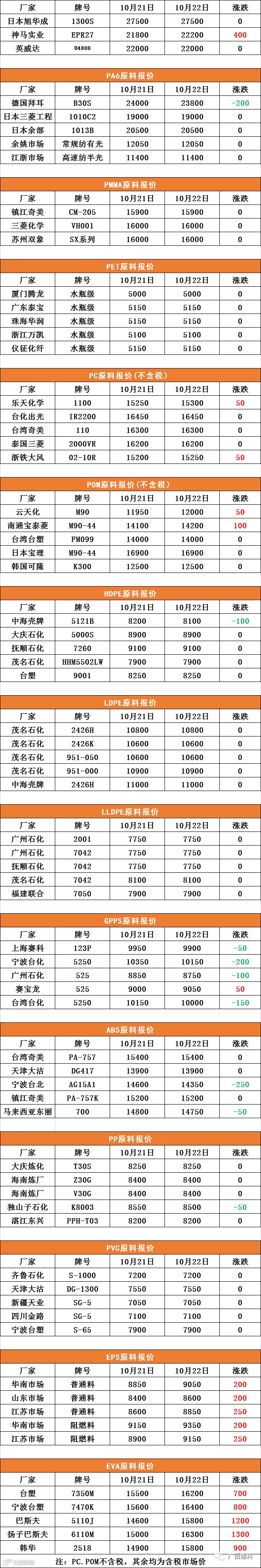 PC、POM不含税,其中含税市场价