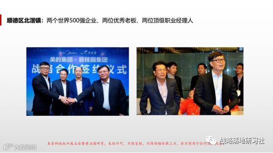 这个图片,放在当下的商业界,我觉得都是一个很有意思的案例。顺德北窖这一个小镇,出现了两个世界五百强,美的和碧桂园,而且有两位很具代表性的经理人。两个老板,何享健和杨国强其实也是关系非常好,杨国强自己也说何享健是他的老师。另外我想强调的是,这两个企业是极其务实,也就是说,他们的做法是讲求比较扎实、比较有效的,没有花架子。