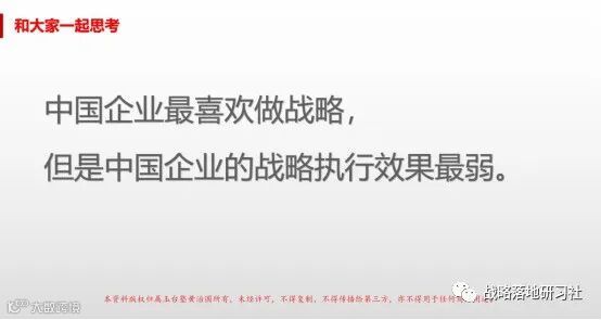 中国企业确实是非常喜欢谈战略,国外企业好象没有像中国企业这么弄得声势浩大讲战略的,但是我们看到中国企业的战略执行的效果,都是比较弱的。